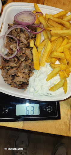 Wir hatten mal wieder Hunger auf Gyros und haben hier bestellt und abgeholt. Was super ist man kann direkt über die Webseite bestellen und sachen hinzufügen oder entfernen, wirklich eine feine Sache. Mann muss mit Wartezeit beim abholen rechnen , was nicht wirklich tragisch ist.wir bekamen eine Flasche Wein für die Unannehmlichkeiten, fand ich eine schöne nicht selbstverständliche Geste. Zum Essen das Fleisch war knusprig gut gewürzt und dennoch saftig und nicht totgebraten. Das Tsatsiki war einfach köstlich schön cremig hatte einen super Stand , eine schöne knoblauch Note nicht zu aufdringlich genau perfekt. Leider gibt es auch etwas was mir nicht so gut gefallen hat, es wurden die Peperoni vergessen denke mal das lag an dem starken Betrieb der aktuelle war worüber ich noch hinweg sehen kann. Was mich persönlich gestört hat ist die Tatsache das die Portion Größe zum Preis nicht wirklich stimmig war. Es waren 631g für 14.90€(+2€für ne extra Portion Tsatsiki) und wenn man den ganzen Tag gearbeitet hat dann ist das für den hohlen Zahn, man war mit essen fertig und musste überlegen was man nach der tollen Vorspeise als Hauptgericht ißt. Früher ging man zum Griechen und man kam Patt satt raus.das ist meine persönliche Meinung, natürlich gibt es Menschen die davon satt werden .Klar es ist aktuell für gastro Betreiber nicht leicht aber es muss schon irgendwo stimmen (preis/Leistung) Unterm Strich fällt mein Fazit positiv aus, werde aber hungrig nicht dort...