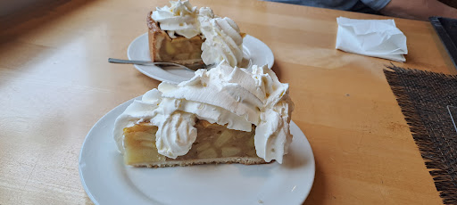 Wir haben uns für Rührei mit Speck entschieden, da die Wursttheke leer war und das um 10 Uhr. Es wurde auch nichts nachgelegt. Das Rührei sah sehr lecker aus, hatte aber keinen Geschmack gehabt, es hat nach Wasser geschmeckt. Wir mussten es mit Salz und Pfeffer sehr stark nachwürzen, das Gott sei dank auf dem Tisch stand. Der Speck wiederum war super lecker, auf dem Punkt genau gross gebraten. Meine Freundin hatte noch ein Brötchen mit Butter und Marmelade dazu genommen, was ihr sehr gut geschmeckt hat. 1 Stunde später wollten wir uns noch was süßes gönnen, da die Kuchen und Desserts einfach köstlich aussahen. Wir haben uns für einen Apfelkuchen mit Zimt und Mandeln entschieden. Natürlich durfte die Sahne nicht fehlen. Die Portion Sahne war wirklich sehr großzügig. Leider hat uns der Apfelkuchen rein gar nicht geschmeckt. Er war geschmacklich dermaßen fad, mann hat von dem Zimt und den anderen Gewürzen nichts Geschmeckt. Was trotzdem gut war, es war reichlich Apfel drinne im Kuchen, was es geschmacklich trotzdem nicht raushauen konnte. Ich bin mir nicht sicher ob dieser Kuchen, frisch dort gebacken wurde er war von Teig her, wie ein fertig Kuchen aus der...