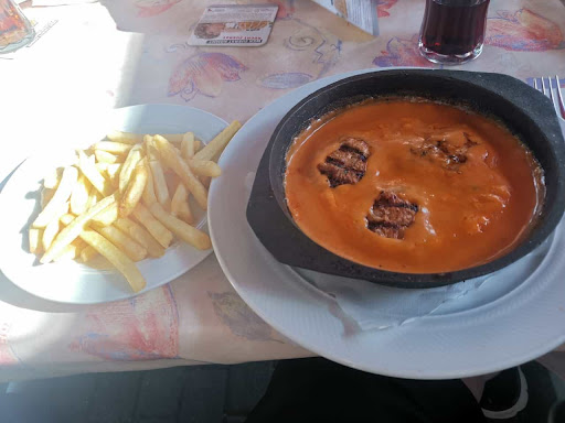 Zyklopenteller: viel Pommes (waren gut), ein "Esslöffel" Tomatenreis, kein Klecks Zaziki dabei, und das Fleisch schien uE "aufgewärmt", aber nicht frisch gebraten oder gegrillt. Über die Qualität lässt sich streiten. Auch hier war die Soße eher unappetitlich und lasch. Untypisch für griechische Art.
