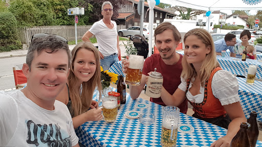 Wir sind an einem Sonntag zur Paddeltour von Grünwald aufgebrochen. Dabei habe ich (Adrian) die Paddel erst zu Hause vergessen und dann in der Bahn liegen lassen. Andy hat uns seinen Surf-Laden aufgeschlossen und Paddel ausgeliehen. Er ist dafür extra aufgestanden in der Früh. Dann haben wir uns am darauffolgenden Mittwoch beim Bistro seiner Schwester verabredet - La Cigale. Der Wein des Tages war hervorragend und alle wirklich super nett. Die Location ist wunderbar.