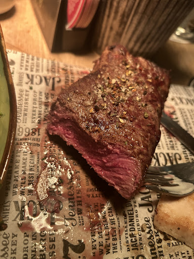Cons: I order the steak sirloin but what I got what a cheap tough cut of meat for 34€, also steak is on a paper sheet so when you cut it most likely you’ll be eating paper with you food. Chimichurri, was extremely salty and tastes like it’s from a jar. The waitress was very not accommodating, which I guess this is what you get from Germany. Mash potatoes was cold and nasty, food was not hot, added sides of prawns and got baby shrimp that were frozen, on the menu it’s says home fries which I asked what were they and the waitress told me they’re fresh cut but I got frozen dried out fries. Can’t really say I enjoyed a 130€ meal. I will not be coming back. Aside from them bashing in their...