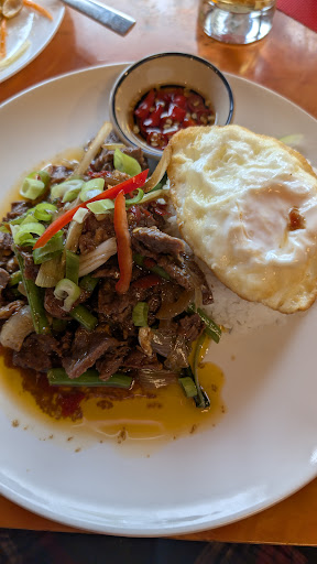 Read moreIn erster Linie ist das ein super-gute-Laune-Restaurant! Hier ist immer jeder bestens gelaunt, immer freundlich, immer zuvorkommend, immer auch präsent – ich habe selten so engagiertes Personal erlebt und allein deswegen ist das eine ganz besondere Empfehlung! Auch in jeder anderen Hinsicht ein sehr angenehmes Restaurant. Täglich wechselnde, recht preiswerte Gerichte, jederzeit frisch und einwandfrei zubereitet. Das Ambiente stammt noch aus der langen Vorgeschichte dieses Lokals, das ursprünglich und lange Jahre eines der besten italienischen Restaurants der Umgebung war („Lo Smeraldo“, wer es noch weiß). Das Ambiente ist immer noch zeitlos und fügt sich auch in die jetzige asiatische Umgebung hervorragend ein. Das Lokal ist regelmäßig gut besucht, dennoch wird man sehr schnell bedient. Viele Kunden kaufen sich Essen zum Mitnehmen (es werden auch spezielle wiederverwendbare Behälter zu einem sehr guten Preis angeboten). Die Küche ist absolut professionell durchorganisiert, noch in keiner Situation habe ich länger als 5 Minuten auf mein Essen warten müssen – meistens ist es sofort fertig. Die Chefin steht regelmäßig selbst mit in der Küche, ist aber auch jederzeit für die Gäste da. „Scharf“ heißt hier wirklich scharf, und jeder extra Wunsch wird berücksichtigt. D.h. man kann mehr oder weniger scharf haben oder auch bestimmte Zutaten abändern lassen. Ein veganes Gericht ist immer dabei (meist mit Tofu) und die Zutaten der Tagesgerichte lassen sich meist flexibel kombinieren. . Sprachlich läuft auch alles barrierefrei. Apropos: zum Lokal hinein gibt es eine kleine Stufe, insofern für Rollstuhlfahrer nur bedingt geeignet – das Personal hilft...