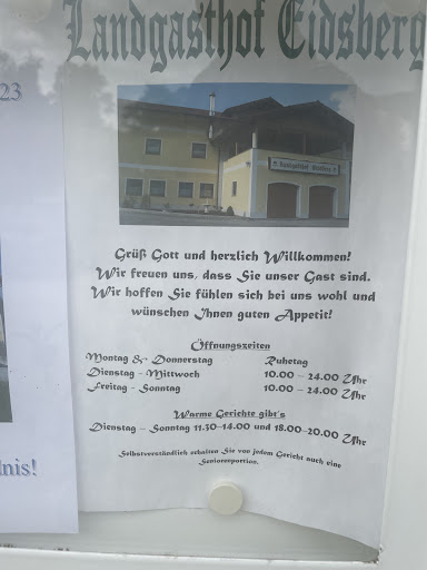 Urlaub mit Allem was man braucht! Wir kommen seit Jahren in den Kreis Deggendorf und übernachten immer im Landgasthof Eidsberg. Die ruhige, wunderbare Lage inmitten des Bayrischen Waldes in der Nähe von Deggendorf und Grafling laden zum Wandern und vorallem zur Einkehr in dieses hübsche, traditionelle Gasthaus ein. Das Preis/Leistungsverhältnis ist hier unschlagbar! Das Essen- Eine wirkliche Wucht! Angefangen vom üppigen Frühstück bis hin zum Abendessen, es fehlt hier an nichts! Das Bier- saugut und die Fremdenzimmer toll ausgestattet, mit allem was man als „normaler“ Urlauber benötigt. Die Inhaber sind auch sehr herzlich und gastfreundlich und wenn man Glück hat, erlebt man sogar bei Veranstaltungen das „wahre“ Leben im schönen Bayern mit! Kommt her...