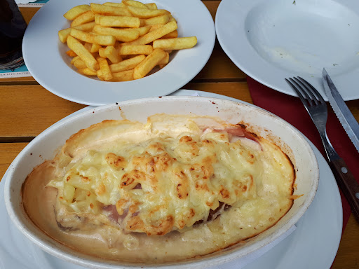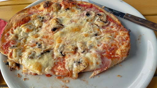PS : Das angrenzende und dazugehörige Restaurant konnte ich nur von Außen einsehen, daher kann ich es nicht wirklich beurteilen. Sieht aber gepflegt aus ! Man kann übrigens auch im Außenbereich vor der Pizzaria an der fischen Luft sitzen und speisen. Allerdings sind dort nur sehr...