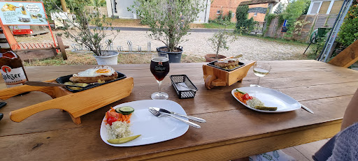 So! Für den Service dürfte ich eigentlich nur Minussterne geben, aber das geht hier leider nicht. Solch einen unverschämten Service wie hier habe ich noch nie erlebt (Besuch am 31.07.2024, ca. 19:00 Uhr, wir waren zu viert). Die Speisekarten (nur zwei) mussten wir selber an unseren Tisch mitnehmen. Wie hier schon mehrfach geschildert, waren auch unsere Getränke pisswarm und kamen zudem noch in mehreren Etappen. Das angepriesene Warnitzer Bier war "aus". Die bestellte Heiße Schokolade war "aus". Die "bedienende" Frau war von Beginn an unfreundlich (auch mehrmals hier gelesen), dies wurde innerhalb kürzester Zeit aber noch viel schlimmer. Nach einer längeren Wartezeit bekamen auch die ersten beiden von uns ihr Essen, leider ohne Besteck! Zwei Minuten später machte ich mich auf den Weg zur Küche, um zu fragen, ob in Brandenburg grundsätzlich mit den Fingern gegessen wird. Auf dem Weg traf ich aber schon auf die "Bedienung", die darauf sagte: "Naja, ich war ja noch nicht fertig! Bleiben se mal ruhig!". Essen und Besteck wurden daraufhin auf den Tisch geknallt. Wir mussten aber prompt feststellen, dass die Hälfte des Bestecks schmutzig war... Also: Nächster Gang zur Küche, in der Hand das schmutzige Besteck! Als ich die "Bedienung" traf, war es mir nicht möglich, sauberes Besteck zu erbeten, weil ich überhaupt nicht zu Wort kam. Sie pampte sofort los, u.a. dass ich ruhig bleiben solle (was ich allerdings im Gegensatz zu ihr war...). Sie verschwand dann Richtung Küche. Wie ich hoffte, um Besteck zu holen. Aber im Gegenteil: Sie kehrte nicht zurück. Währenddessen wurde ich von einem herumstehenden Vollalki vollgenölt, beschimpft und bedroht. Nach kurzer Beratung stellten wir fest, dass wir eigentlich überhaupt nichts mehr essen wollten. Wir gingen dann zu viert zur Küche, um dies mitzuteilen. Auch hier kamen wir nicht zu Wort, weil die "Bedienung" sofort losbrabbelte. Besagter Vollalki gab seine "geistigen" Ergüsse ebenfalls parallel zum "Besten". Allerdings lugte dann der Koch aus seiner Küche hervor und begann völlig überraschend, vernünftig zu reden. Er entschuldigte sich sogar für die Unannehmlichkeiten (begründete dies allerdings mit Stress, obwohl der Laden alles andere als vollbesetzt war) und schlug vor, dass wir noch einmal von vorne anfangen könnten, was wir dann auch annahmen. Ich betonte aber - mit Blick auf die "Bedienung" - dass alle dazu bereit sein müssten. Die "Bedienung" schein dies mit grimmigem Blick zur Kenntnis zu nehmen. Wir aßen dann noch unsere kalten Schnitzel (viel mehr gab die "Speisekarte" auch nicht her) und verschwanden schleunigst. Mit einem Stern ist dieser Service also deutlich überbewertet. Für Masochisten aber sehr...
