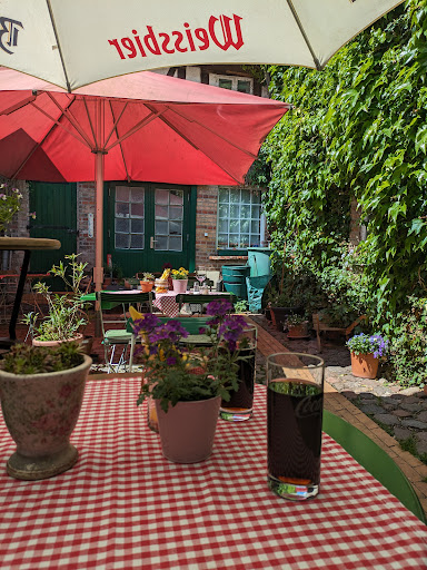 Read moreWir waren zum Mittagessen mit 4 Personen dort. Das Ambiente im Innenhof ist schön. Würde man den roten Sonnenschirm gegen einen grünen Sonnenschirm austauchen, wäre es perfekt. Klinkermauer, wilder Wein und Fachwerk, es ist romantisch und einfach toll!!! Das Essen ist leider nicht so perfekt! Es fehlte die Würze! Wir haben Zander gegessen, es waren ganz kleine Schwanzstücke mit Kartoffeln (sehr gut) und Brokkoli mit holländischer Soße aus dem Tetrapack. Havelländer Zander im Havelland, die Erwartungshaltung ist einfach größer. Warum nicht einfach mit Gurkensalat und Dill ....... . Vorweg haben wir eine Soljanka gegessen, die hat uns sehr sehr gut geschmeckt. Das Personal war ganz besonders freundlich, das hat uns sehr gut gefallen. Also wenn das Herzstück des Restaurants (die Küche) noch nach vorne gebracht wird, ist alles perfekt! Gerne kommen wir...
