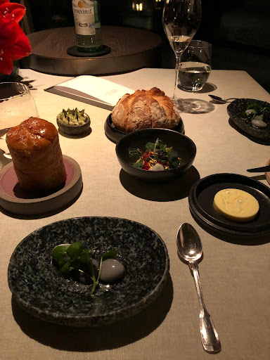 Das Restaurant ist in jeder Beziehung geschmackvoll gestaltet. Alles, was wir schätzen, war gegeben. Der Abstand zwischen den Tischen ist großzügig. Ein von mir gewünschter Tisch war für uns reserviert. Die Sitzmöbel sind bequem und mit Lehnen versehen. Separat gab es die Möglichkeit, die Handtasche der Gattin und das Mobiltelefon abzulegen. Die Tischhöhe ermöglichte es, die Beine übereinanderzuschlagen. Eine Tischdecke war vorhanden. Die Musik im Hintergrund war dezent. Das Geschirr ist geschmackvoll ausgewählt. Das Silberbesteck, ein Sammelsurium. Die Gläser von Riedel. Im Laufe des Abends hatten wir die Möglichkeit zu einem intensiven Austausch mit Edip Sigl, Restaurantmanager Simon Adam und dem Managing Director Nikolai Bloyd. Sie berichteten über den Entstehungsprozess und die Philosophie des Restaurants. Und so verstand ich, warum keine Gläser von Zalto oder der Josephinenhütte im Einsatz waren und was es mit dem Besteck auf sich hat. Beeindruckend, wie viel Energie und Zeit aufgewendet wurden, um am Ende ein grandioses Gesamterlebnis zu erschaffen.