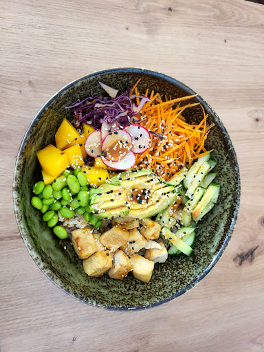 Read moreWir sind zum Mittag an einem Samstag in Mimi Salads & Bowls. Am Anfang war es mit Gästen noch sehr übersichtlich, ab 12:30 Uhr war es knacke voll, draußen wie drinnen. Es kamen auch viele Gäste die sich Essen zum Mitnehmen bestellten. Es ist klein, aber sauber und gemütlich. Wer nicht drin essen möchte, findet auch draußen einen Platz. Die Mitarbeiter sind sehr freundlich. Die Karte ist zwar übersichtlich, aber ausreichend, es ist für jeden etwas dabei. Geschmacklich ist es einfach nur super lecker. Sehr frisch und die einzelnen Zutaten sind super aufeinander abgestimmt. Die Portionen sind genau richtig, man ist satt und es liegt nicht schwer im Magen. Rundum zufrieden. Wer möchte, kann sich auch eine Stempelkarte geben lassen. Und ich liebe die Iced Matcha Latte. 😍 Obwohl ich schon oft da war, nehme ich mir jedesmal aufs Neue fest vor, den Erdbeereistee zu probieren, aber ich komme an dieser Iced Matcha Latte nicht vorbei. Eindeutige Zwickmühle. 😩 Mimis Salads & Bowls kann ich nur empfehlen und man sollte unbedingt reinschauen....