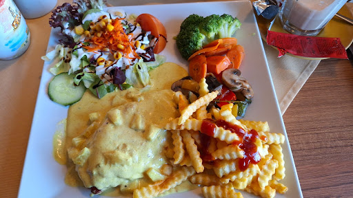 Read moreSehr schönes Ambiente am Wasser. Sehr nettes und zuvorkommend Personal. Essen war auch sehr lecker. Gemüse und Salat sehr frisch und knackig. Hähnchen und Pommes schön heiß und frisch. Auf Wunsch kostenfrei Ketchup und Majonaise dazu. Es gab nur 2 Dinge zubemengeln . Die Curry-Sauce war sehr lasch und hat kaum nach Curry geschmeckt. Das war sehr Schade, dadurch bekam das Gericht ein komischen Beigeschmack. Sehr gut war jedoch das wir von dem Personal nach unserer Zufriedenheit gefragt worden sind. Als wir unsere Kritik äußerten, reagierten diese sehr verständnisvoll und freundlich. Das Personal blieb durchweg freundlich. Der zweite Mangel war das die Speisekarte nur 2 Dessert hergab. Die Creme Brülé war zwar sehr lecker luftig leicht und nicht zu süß, aber dennoch wäre mehr Dessert Auswahl schön gewesen. Jedoch der Rest der Speisekarte hatte für jeden Wunsch was übrig. Ob Wild, Schwein, Hähnchen oder Fisch, Nudel oder Pizza. Alles dabei. Sehr gut war auch das man eine freie Belagenwahl hatte, was es nur selten in Restaurants zu finden gibt.