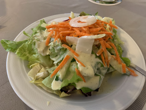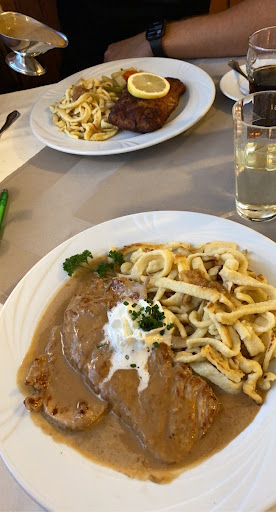 Das Essen war die totale Katastrophe! Die Flädle Suppe war kalt. Zum Salat wurde kein Brot gereicht. Die Hauptspeise Wiener Schnitzel wurden in Öl/Fett ertränkt. Die Käse Spätzle waren wahrscheinlich fertig Spätzle aus dem Kühlregal. Mit einer Scheibe abgepackten Scheibenkäse belegt und überbacken.