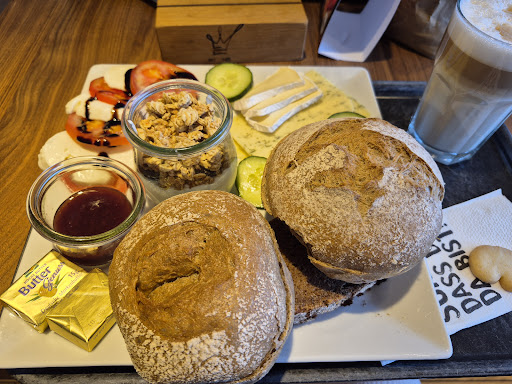 Read moreHeute war ich gegen 13:30Uhr dort und bin sehr unzufrieden mit dem Service gewesen. Würde von einer Dame mit roten lockigem Haar bedient der sehr unfreundlich war und mir auf die Frage ob ich beim Menü "Glücksfee" anstatt 2 Brot Scheiben mit Aufpreis vielleicht ein Brötchen zusätzlich bekommen könnte antwortete Sie mit einem durschnaufen und genervten Blick und sagte "Ja ok schreib ich auf den Bon". Dann muss ich sagen das mir das Menü wirklich für 9,99€ zu mickrig war 1Scheibe Gouda 1 Scheibe Bärlauch Käse bisschen Camembert Käse 1 Dip Glas Tomate Mozzarella 1Dip Glas Marmelade keine Wurst kein Ei naja gibt es bei anderen Bäcker auch besser! Ich arbeite seit meinem 14. Lebensjahr in der Gastronomie und kann somit auch eine fundierte Meinung erlauben. Wenigstens schmecken die Backwaren wobei nach so einem Service das wohlfühl Erlebnis ausblieb. Dort werde ich mein Geld nicht mehr ausgeben und unter Frühstück erwarte ich...