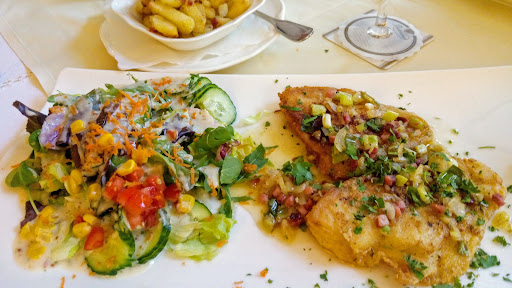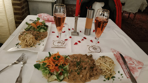 Zur Vorspeise gab es eine Super Leckere Spagelcreme Suppe, welche ich so noch nie gegessen habe, in dem Geschmack. Sie war grandios und alleine davon hätte ich mich am Liebsten Satt gegessen! (Ich brauche das Rezept!!!🫠) Zum Hauptgang gab es verschiedene Platten, von denen Wir nehmen könnten worauf wir Lust hatten. 2× Fleisch, 1× Fisch platte sowie viele Extras wie Kartoffeln, spätzle, Kroketten, Gemüse ect. So war für jeden was dabei! Auch äusserlich sah das Essen super gut aus, da es schön Her gerichtet war! Als Nachspeise gab es Vanille Eis mit Kirschsoße, sowie Herrencreme, die wir als Alkoholfreie Variante bestellt hatten. Auch dies schmeckte sehr Vorzüglich!:D Meine Hochzeitsgäste waren Begeistert vom Essen, sowie mein Mann und ich auch. Es sind alle Satt geworden und zufrieden nach Hause gefahren! Ich kann dieses Restaurant jedem Empfehlen, Vorallem für Feiern eignet es sich sehr gut. Freundliches und Höfliches Personal, die auch immer mal wieder gefragt haben ob alles in Ordnung ist, Tolles Ambiente und Vorallem Vorzügliches Essen! Immer wieder Gerne!:D Vielen...
