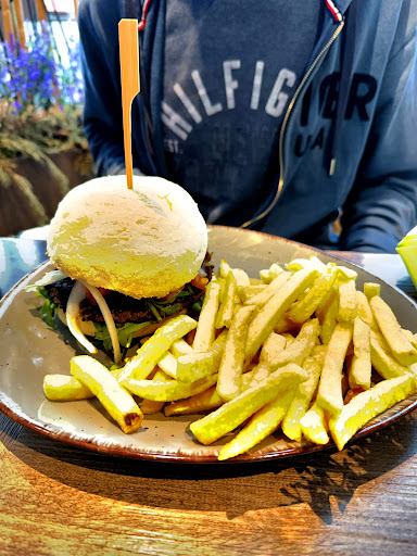 Nun zum Essen, ich habe noch nie so eine leckere Pizza bekommen. Ein schöner knuspriger Rand , der Belag nach Wahl machte das Essen zu einem richtig schönem Erlebnis . Der Burger den mein Mann serviert bekam traf genau seinen Geschmack!