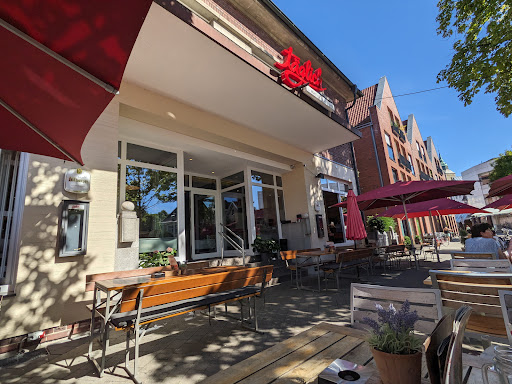 Read moreHeute die meist frequentierte Location in Greven. Aaaaber: Wer auf Allerweltsbier gern verzichtet und lieber ein leckeres westfälisches Traditionsbier trinkt oder wirklich aromatische Kaffeespezialitäten statt gefärbten Heißwassers bevorzugt, sollte sich diese Getränke am besten selbst mitbringen (gibts 50 m weiter unten auch zum Mitnehmen). Die angebotenen Snacks und Gerichte sind nun mal Convenience und nicht gesundheitsschädlich (gilt auch für das Rührei aus dem Tetrapack) Wer seine Ernährungsgewohnheiten auf dieses Genre abgestellt hat, fühlt sich gleich wie zu Hause. (Und wenn jemand unbedingt eine richtig frische Pizza will, kann er diese ja von nebenan mitbringen). Die Preise sind keineswegs zu hoch, da einem aufgrund des angebotenen Leistungsstandards Zurückhaltung beim Verzehr leicht fällt und somit der Besuch dieser Location pekuniär moderat ausfällt. Ausstattung und räumliches Ambiente entsprechen in seiner Pseudo-Modernität dem Geschmack des provinziellen Publikums, und die gute Besucherfrequenz belegt, was hier im Dorf bislang gefehlt hat. Der Service ist eifrig bemüht, seinen Job zufriedenstellend zu erledigen, und deshalb gibt es dafür mehr als...