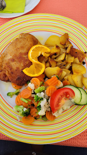 Nach einer kurzen Weile hatte er dann auch etwas nachgefüllt aber leider nur die "Mini Schnitzel". Und diese waren "Zäh" und schmeckten wie die fertig gekauften Schnitzel. Nachdem wir den Chef darauf aufmerksam machten bekamen wir von ihm als Antwort: "daneben steht Butter, schmiert besser im Abgang".