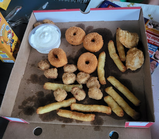 Was wir im allgemeinem bemängeln müssen ist das Preis-Leistungs-Verhältnis. Für den hohen Preis passt die Qualität der Produkte nicht. Die Pizza Wien war sehr gut gebacken dafür aber spärlich belegt. Die Glückspilz war weder gut gebacken noch gut belegt. Wir essen die Wien schon viele Jahre und mussten immer wieder feststellen das die Qualität von Mal zu Mal schlechter wird. Es ist kaum noch Schnitzel darauf und am Broccoli wird auch gespart. Der Glückspilz sieht ähnlich aus ebenfalls wenig belegt. Was man hier allerdings echt loben kann war die Qualität der Pfifferlinge die war echt super. Bei den Fish& Chips waren die Rösti super und Knusprig, der Fisch allerdings war eine Zumutung. Die Panade klebte am Karton fest und schmeckte nach alten Öl.