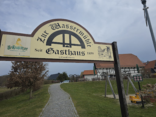 Read moreWir waren an einem Samstagabend mit einer Gesellschaft von ca 20 Personen zu einer Feierlichkeit im Gasthaus Zur Wassermühle. Es gibt einen Parkplatz direkt vorm Haus, ein weiterer, größerer ca. 5 Minuten zu Fuß entfernt. Im Gebäude ist eine sehr angenehme Atmosphäre, da die Räume mit Holz gestaltet sind und die Beleuchtung warm aber nicht zu schummerig, sondern sehr angenehm ist. Es gibt verschiedene Räume, die mit eigenen Namen versehen sind. Wir waren im Obergeschoss unter dem Dach, wo es trotz Samstag Abend nicht voll war. Wir waren zum Kaffeetrinken und Abendessen dort. Die Auswahl auf der Karte bezüglich Kuchen ist nicht allzu groß, aber völlig ausreichend. Ich hatte sächsische Eierschecke, die sehr lecker war. Für das Abendessen ist die Auswahl größer, allerdings könnten nach meinem Geschmack mehr vegetarische Gerichte auf der Karte stehen. Ich hatte die mediterrane Nudelpfanne, die ich sehr empfehlen kann! Der Geschmack, die Menge und wie es angerichtet wurde, war echt toll. Nach meinem Empfinden eher hochpreisig, aber das Geld wert. Begleitet hat uns eine freundliche und humorvolle Bedienung mit einem aufmerksamen Team. Insgesamt ein gelungener Aufenthalt in einem empfehlenswerten Gasthaus! Nachtrag: Wir hatten einige ältere Personen dabei, die beim Treppensteigen etwas Probleme hatten. Ein Aufzug ist mir nicht aufgefallen, habe aber auch nicht drauf geachtet. Müsste...