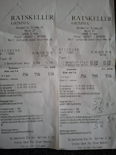 Ich wollte mit meiner Familie eigentlich nur gemĂŒtlich meinen Geburtstag feiern und bin nun sehr traurig, den Ratskeller gewĂ€hlt zu haben. Wir setzten uns, nach lĂ€ngerer Wartezeit im Eingangsbereich, einfach an einen freien Tisch. Die leider sehr unfreundliche "Servicekraft" begrĂŒĂte uns weder anstĂ€ndig, noch hatte Sie Speisekarten in der Hand. Nach Aufforderung der Karten wurde ihre Stimmung noch schlechter. Da meine Kinder nicht wussten, was es hier fĂŒr alkoholfreie GetrĂ€nke gibt (stand nirgendwo geschrieben), wurden sie von der "Servicekraft" patzig angesprochen: "Na ihr wisst doch, was ihr sonst immer trinkt." Mein Aperitif (Hugo) war eine Mischung aus irgendwas SĂŒĂem zusammen mit EiswĂŒrfeln und 2 kleinen MinzblĂ€ttern. Die Wartezeit, bis das Essen kam, war sehr lang und erschien uns durch das unwohle GefĂŒhl, welches wir nun bereits hatten, noch viel lĂ€nger. Das Essen war unter Durschnitt. Mein Wunsch zum Gericht wurde vergessen und nach freundlichem Nachfragen auch nicht wirklich umgesetzt- was das Gericht auch nicht gerettet hĂ€tte. Das Schnitzel meines Sohnes war leider unterirdisch. Ich hatte das GefĂŒhl, dass hier mit minimalen Mitteln versucht wird, etwas zu erreichen. Und ich bin sehr traurig, da ich mit hohen Erwartungen dieses Haus ausgewĂ€hlt habe und wir viel Geld fĂŒr mein Geburtstagessen bezahlten, was leider voll in die Hose ging. Wenn man schon die Möglichkeit hat, in einer so tollen Lage und mit einer so genialen LokalitĂ€t zu punkten, sollte man weitere wichtige Aspekte, wie Service und Frische der Produkte, nicht auĂer...
