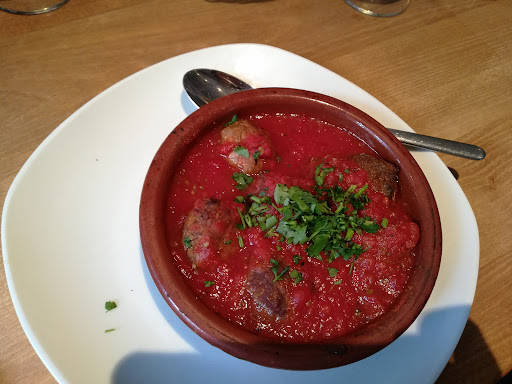 Wir entschieden uns spontan für eine kleine Auszeit von zu Hause ins nahe gelegene "Halbtrocken" nach Groß-Gerau zu fahren. Glücklicherweise bekamen wir nach kurzfristiger telefonischer Anfrage noch einen Tisch für Zwei im vorderen Bereich. Von außen hätten wir nicht vermutet, dass dieses Lokal, dass sich hinter einer pittoresken Fachwerkhaus-Fassade "versteckt" noch so viel Tiefe zu bieten hat. Mehrere kleine, hübsch gestaltete Räume bieten ein ganz unterschiedliches Ambiente in ein und derselben Location. Wir wurden von mehreren Kellnern bedient, alle waren äußerst aufmerksam, sehr zuvorkommend, freundlich und einer war auch ganz besonders lustig und pfiffig. Die bestellten Tapas und der Wein sowie ein "Damentoast" (eigentlich ein Salat mit geröstetem Brot) mundeten uns hervorragend und waren angesichts des Preises auch wirklich üppig. Für Päarchen und kleine Runden im Freundeskreis ein absoluter "Geheim"-Tipp! Wir kommen sehr...