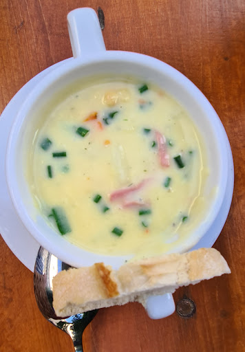 Read moreSchnitzel hat ca. 200 gr. und ist aus der Friteuse. 9 Euro ohne Pommes oder Salat. Die Nachfrage was ein zusätzliches Schnitzel kostet wurde mit das Doppelte beantwortet. Die Rahmsoße war eine dünne Gemüsebrühe mit vielleicht einem minimal frischem Champignion. Geschmacklich ok, jedoch mit 12 Euro etwa mit Pommes fand ich zu viel, denn statt wurde ich ( als Frau) nicht....