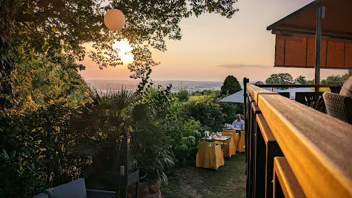 Ein besonderer Hingucker ist der Blick von der Terrasse auf die umliegenden Weinberge. Bei Sonnenuntergang ein wahrhaft magischer Moment.