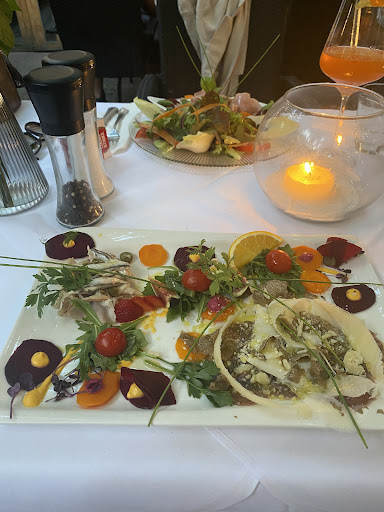 Read moreWaren vor Kurzem dort essen. Das Restaurant ist an sich schön eingerichtet, aber auch sehr schick. Die Preise sind angemessen, stellenweise aber auch überteuert. Am Nachbartisch wurde eine Vorspeisenplatte bestellt, die zwar zuerst ganz pompös aussah, jedoch dann beim genaueren Hinschauen Standard-Gemüse aufwies und etwas, das wie Wein im Glas aussah, jedoch keiner war und vom Betreiber selbst nur als "Das ist etwas fürs Auge" deklariert wurde. Fand ich schade, weil man doch eigentlich in ein Restaurant geht, um dort zu essen, und nicht um Essen vorgeführt zu bekommen. An dem Abend selbst war auch sehr viel los, jedoch kaum Personal da, sodass wir teils leider sehr lange auf Getränke warten mussten. Die Hälfte des Personals konnte auch kein Deutsch, was auch doof war, da Fragen nicht beantwortet werden konnten und Bestellungen / Bitten ungewollt unterschlagen wurden. Der Betreiber selbst war zwar ein netter Kerl, man hatte aber das Gefühl, dass er über die Inhaltsstoffe / Allergene seines Essens keine Ahnung hatte. Außerdem bekam man schnell das Gefühl, dass er selbst sehr viel von sich hält (Er hat sein Gesicht neben der Speisekarte auch auf dem Seifenspender im Bad abdrucken lassen),was an sich ja nichts Schlechtes ist, aber einem das Gefühl vermittelt wurde, dass er sich für den Besten hält und sämtliches Personal nicht an ihn rankommt und etwas mies / untergeordnet behandelt wird. Alles in allem eine okaye Erfahrung, aber für mich persönlich...