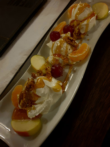 Read moreSorry, aber das ist Essen auf niedrigem Niveau zu vollkommen überteuerten Preisen! Der Salat war vollkommen ungewürzt, d.h. mit Wasser (!) und Öl. Essig hatte der Salat nicht gesehen. Noch dazu wurde im Salat billigste Qualität, Eisbergsalat, inklusive fertigen, geschnittenen Dosenkarotten verwendet. Die Aubergine (optisch eher Zucchini) als Vorspeise bestand aus vier dünnen Scheiben, mit Käse überbacken und dazu Fertigtzaziki (ja, wirklich, fertiges Tzaziki!!!!!). Bei den beiden Hauptgerichten kam eines mit einer falschen Beilage (das Restaurant war leer und es wurde vergessen dies an die Küche weiterzugeben). Die Leber des Olympustellers war komplett durchwachsen und auch die anderen Fleischsorten waren vom Geschmack her durchweg identisch gewürzt. Zum Kaffee kam es gar nicht mehr, da niemand danach gefragt hat. Fazit: Die Preise sind für die gebotene Qualität vollkommen überzogen. Ein Zeichen für die mindere Qualität ist die Kennzeichnung fast aller Gerichte mit Geschmacksverstärkern!!!!! Bei frischen Gerichten würde das nicht vorkommen. Schlußendlich heisst es, einmal und leider nicht wieder.