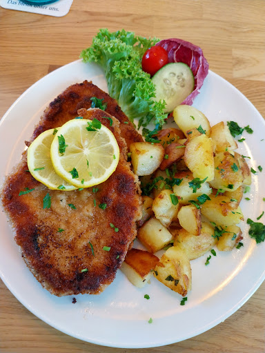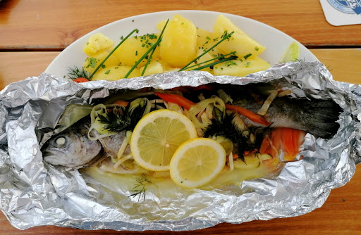 Dann mussten wir noch ca. 20 Minuten warten bis unsere Getränkebestellung aufgenommen wurde (es war heiß und wir ziemlich durstig). Die Essensbestellung ging dann wieder relativ schnell. Das lecker und frisch zubereitete Essen (Schnitzel und Forelle Müllerin Art) baucht dann natürlich Zeit (kein Problem, wenn der erste Durst gelöscht ist ;-).