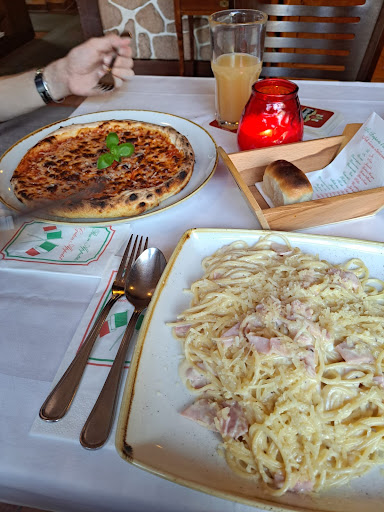 Read moreIch war hier auf Durchreise, habe mich auf der Suche nach Pizza aufgrund einer sehr positiven Bewertung für dieses Restaurant entschieden. Was soll ich sagen - es war ein unfassbar angenehmer Abend. Kurz nachdem ich die Karte erhalten habe, gab es ungefragt ein kleines Bruschetta aufs Haus. Das Paar neben mir war mit dem Besitzer Ricci per du, sehr herzlich und familiär. Habe mich für einen Limoncello Spritz (hier das erste Mal gesehen, Bombe!!) und eine Pizza Italia entschieden. Die Pizza war übrigens ca 10 Minuten nach dem Bestellen serviert. Ganz ehrlich, ich wusste nicht, dass Pizza SO gut schmecken kann. Die Kruste war so aromatisch, fast schon süßlich, aber auf eine so authentische und herzhafte Art... hat mich ein bisschen an (sehr gutes) Langos erinnert der Geschmack. Ich war hin und weg. Ohne Witz, beste Pizza meines Lebens bisher. Schade dass ich nicht in Großhain wohne :( zum Abschied gab es sogar noch einen Limoncello aufs Haus.