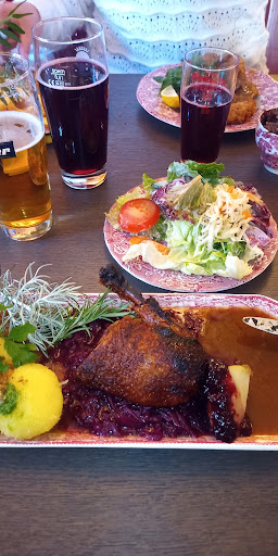 Read moreWir waren die ersten angemeldeten Gäste am ersten Weihnachtsfeiertag und erhielten als letzte unser Essen. Woran das lag? Wir haben keine Methode erkannt. Die anderen Tische, erhielten jedenfalls ihre Suppe, auf die wir verzichteten, früher als wir unseren Hauptgang. Wie an anderer Stelle schon richtig beschrieben, läuft die Bewirtung ja in streng geordneten Bahnen ab, so dass der gesamte Gastraum (es stehen noch zwei weitere zur Verfügung) gleichzeitig versorgt (besser: abgefertigt) werden musste. Unsere Bedienung trat selbstbewusst genug auf, um die Chefin sein zu können. Allerdings würde ein auf Dauer erfolgreicher Chef die betriebswirtschaftliche Weitsicht entwickeln, zu erkennen, welchen Einfluss Freundlichkeit auf das Geschäft haben könnte (selbst wenn man einen "natürlichen fränkischen Malus", der typisch für die hiesigen Landgasthöfe ist, zugestehen würde). Wir hatten Rindsrouladen für die, die erwartet haben, eine Gänsebrust im Gasthaus, in der "späten Schicht" um halb zwei, sei zu trocken und Gänsebrust für die Zuversichtlichen. Ergebnis: beide Seiten mussten Abstriche hinnehmen. Weihnachten werden eben alle Menschen zu gleichwertigen Brüdern. Was erwartet ein Gast von diesem Essen? Welchen Stellenwert hat die Soße? Können wir uns darauf einigen, dass die Soße bei beiden Gerichten das A & O ist? Um es kurz zu machen: beide Gerichte HATTEN eine Soße, die allerdings nicht von dem jeweiligen Braten stammte. Wer je einen von diesen Braten herstellte, fragt sich also: was haben die mit der entstandenen Soße angestellt? Wir jedenfalls haben sie nicht bekommen. Die GänseBRUST selbst gibt zugegebenermaßen kaum verwertbare Flüssigkeit ab, also müsste man aus anderen Teilen bzw. GANZEN GänseN eine separate Soße herstellen. Offenbar zu viel verlangt. Dann ist allerdings der aufgerufene Preis von 18,50€ auch recht ambitioniert, zumal das Fleisch selbst (siehe Spätschicht!) teilweise so mumifiziert war, dass man es zu den Knochen legen musste. Die darüber liegende Haut war stellenweise so hart geworden, dass das Messer daran abrutschte. Die Rouladen waren bis auf die erwähnte Soße in Ordnung. Bis zum Ende unseres Besuchs beschäftigte sich die Bedienung nicht mehr mit uns. Die Frage nach einem Nachttisch löste geringeres Interesse an uns aus, als am vollen Geschirrspüler. Wir haben dann zu unserem gegenseitigen Vorteil darauf verzichtet. Fazit: Wer ein richtiges, festliches Mahl möchte, muss es sich Zuhause zubereiten oder woanders essen. Wer an anderen Tagen kommt, kann recht schmackhaftes bürgerliches Essen erhalten. Wer eine Bedienung unter 54 Jahren findet, kann freundlich...