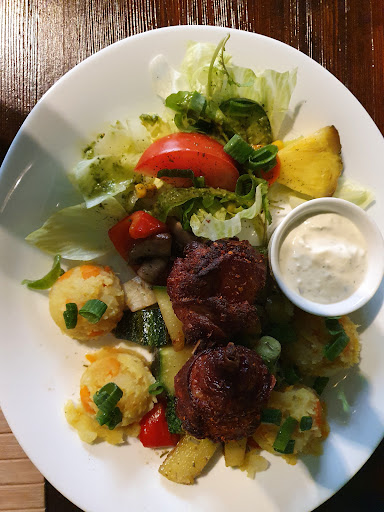 Wir haben nach dem Besuch von Sehenswürdigkeiten in der Umgebung, etwas gesucht, wo wir unsere verbrauchten Kalorien wieder aufbauen konnten. Über Google sind wir auf dieses Restaurant gestoßen, was uns von der Bewertung her überzeugt hat, dieses auszuwählen. Tatsächlich wurden wir dieses Mal nicht enttäuscht. Die Atmosphäre in dem Restaurant ist sehr gemütlich. Alles macht einen gepflegten und liebevollen Eindruck. Die Karte ist sehr gut bestückt. Für jeden Geschmack ist etwas dabei. Wir wollten den Salat eigentlich "nur" als Vorspeise nehmen. Doch dieser war so groß, dass wir danach Probleme hatten, das leckere Essen zu schaffen. Theoretisch würde ein Salatteller, als ein Essen ausreichen. Ich habe die Roulade gegessen und mein Mann das Schweinesteak in Balsamico-Kirschsauce. Die Gerichte, sowie der Salat, waren liebevoll angerichtet. Der Geschmack, war eine wohltat für unsere Gaumen. Es ist selten, dass man heutzutage noch so gut speisen kann. Die Bedienung war sehr freundlich und wirkte trotz eines großen Geburtstagstisches, den Sie mit bedienen musste, nicht überfordert. Sie schaffte es zum Glück, uns noch vor dem großen Tisch zu bedienen, so dass wir nicht Ewigkeiten auf unser Essen warten mussten. Sie hat einen sehr guten Blick für Ihre Arbeit und weiß, worauf man achten muss. Das Preis-/Leistungsverhältnis ist sehr gut. Wir haben nichts gefunden, was wir...