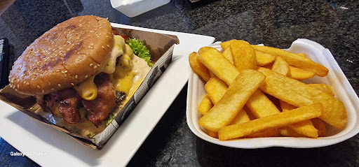 Jedzenie brałam na wynos z dostawą do domu, ale było bardzo dobre i ciepłe przy odbiorze. Porcje burgerów były sporej wielkości, frytki dobrze doprawione nie tylko solą mięso soczyste,nie żałują dodatków oraz sosów. Cenowo też jest w porządku za buregra z 3 kotletami=540g mięsa i mnóstwem innych dostakowy + małe frytki za 17e. Mogę szczerze polecić tą restauracje. Na zdj bez frytek...