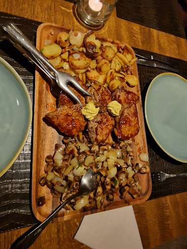 Ich bin über Google Maps auf das Steakhaus Mativa gestoßen... und ich muss sagen, es ist wirklich richtig gut. Die Einrichtung ist sehr schön, die Stühle und Bänke sind sehr bequem. Besonders gut fanden wir die Salatbar, der Salat war frisch und hat sehr gut geschmeckt. Als Appetitanreger gab es Brot mit Kräuterbutter, das war auch richtig lecker und schön angerichtet.