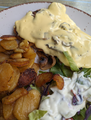 Die Bedienung ist sehr freundlich, und die Getränke war schnell da. Das Essen hat mir sehr gut geschmeckt die Pommes waren schön kross und nicht zu dunkel, die Salatbeilage war frisch und knackig. Das Schnitzel schmeckte sehr lecker, schön saftig. Ich kann hier negative Bewertungen nicht nachvollziehen. Besonders spannend fande ich die günstigen Preise für eine solch gute Portion. Ich bin definitiv satt geworden und das für einen guten Preis. Auf extrawünsche wird flexibel eingegangen.das Bier war frisch gezapft und gut gekühlt.Ich komme auf jeden Fall wieder. Die Toiletten sind aufgrund des Altbau nicht gut zu erreichen enge treppe usw. Die Toilettenräume sind sehr alt aber sehr sauber. Das Ambiente im Inneren ist nicht so ansprechend aber draußen kann man schön sitzen. Ich freue mich auf ein...