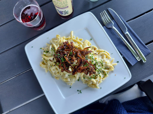 Die Kässpätzle enthalten soviel fettigen Käse, daß man nicht alles essen konnte.