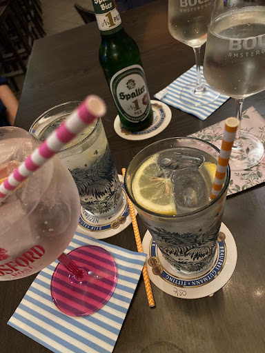Man kann hier drinnen und auch draußen sitzen. Die Bar hat eine schöne Lage in der Stadt und direkt an der Kirche. Drau0en blickt man genau auf die Kirche. Die Preise der Cocktails und der anderen Getränke sind eher gehoben. Die Biere sehr günstig und es ist eine sehr große Auswahl vorhanden. Das Personal ist nett. Es wird sehr angenehme Musik aus den 70 und 80...