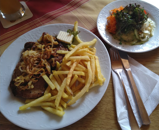einmal und nie wieder, wirt koin grüß gott was darfs sein , legt speisekarte auf tisch und wartet bis man sagt was man will dann essen nicht fertig ( lende) nur in pfanne rein und raus ,kam blut noch rausgelaufen ? ) kein nachfragen obs schmeckt beim bezahlen bekamen wir nur den endbetrag auf nem zettel kein...