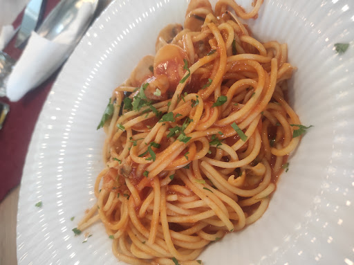 Read moreHm, gemischte Gefühle. Waren mit dem Schlemmerblock da. Hatten zwei mal den Schwertfisch, Nudeln und Pizza. Leider war in den Teig meiner Pizza ein Haar eingearbeitet. Es lag also nicht einfach oben drauf, sondern war tatsächlich im Teig. Eigentlich finde ich das nicht so schlimm, kann passieren und wir sind alle nur Menschen, ich wäre nicht dran gestorben. Enttäuschend fand ich die misslungene Rechtfertigung des Kellners, der meinte, das Haar (etwa 3-4cm und tief schwarz) von den Champignons käme… ich hatte überhaupt keine Champignons auf meiner Pizza und selbst wenn, habe ich noch nie welche mit einer dafür passenden Frisur gesehen. Im Grunde war das Essen gut, weshalb wir dem Laden vielleicht noch eine zweite Chance geben, dennoch kann ich die Reaktion der Servicekraft nicht nachvollziehen. Aus anderen Lokalitäten bin ich es gewohnt, dass man eine kleine Wiedergutmachung aufs Haus bekommt oder zu mindest eine Entschuldigung. Auch diese blieb leider...