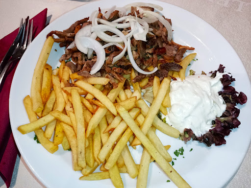 Die Hauptspeisen waren durchweg schlecht. Das Fleisch schmeckte minderwertig, als würde es sehr günstig eingekauft sein – so eine Qualität bekommt man bei keinem Metzger. Das Gyros war zäh und geschmacklos, die Leber völlig totgebraten, ebenso das Fleisch auf den Spießen – trocken und ungenießbar. Die Tintenfische waren ebenfalls zäh. Selbst das Kinderschnitzel ließ sich schwer schneiden und war zäh. Am schlimmsten waren jedoch die Pommes: völlig geschmacklos, so etwas haben wir lange nicht erlebt.