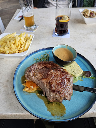 Read moreZu beginn sei gesagt das wir für 7 Leute reserviert hatten und einen Tisch mit 6 Stühlen zugewiesen bekamen. Den 7 Stuhl konnten wir uns dann selbst organisieren. Das Besteck wird in diesem Restaurant in einem Holzständer auf dem Tisch bereit gestellt. Dies ist grundsätzlich in Ordnung aber ich erwarte das wenn man schon reserviert das auch die mind. ausreichende Menge an Besteck auf dem Tisch bereitgestellt wird. Und man nicht nachdem man das Essen bekommt noch nach Besteck fragen kann. Das sind so Kleinigkeiten die zu einem guten Service dazugehören. Meine Frau hatte ein Schnitzel Wiener-Art mit Zitrone bestellt. Von der Zitrone fehlte jede Spur. Auch der in der Karte erwähnte Salat der dazu serviert (!!) wird wurde gänzlich vergessen. (Alle anderen Salate sind vom Buffet, falls kein Salat serviert wird ist die Karte zu ändern!!) Geschmacklich war es wohl unter das Friteusenschnitzel am Frankfurter Flughafen einzuordnen. Mein Rinderhüftsteak 350g (23,90€) war gut gebraten aber nicht ausreichend Gewürz. zzgl. Bratkartoffeln (4,50€) und Pfeffersoße (2,50€) diese waren in Ordnung. (=30,90€) Das Preisniveau empfinde ich als relativ hoch und erwarte für das Geld einen besseren Service, und nicht eine Bedienung die mit einem misepetrigem Gesicht 3x an den Tisch kommt und genervt fragt ob wir noch was trinken wollen. Das ist gleichgesetzt mit; trinkt noch was oder haut ab. Obwohl wir bestimmt nicht zu der Kategorie Menschen gehören die noch ewig an einem Getränk rumnippen und stundenlang sitzen bleiben und keinen Umsatz generieren. Nachdem wir dann die Rechnung verlangt hatten wurden wir dann ersteinmal 25min. komplett ignoriert. Sorry, aber da gab es dann auch so gut wie kein Trinkgeld mehr. Das zahle ich gerne eine Kollegin in einem anderen Restaurant mit mehr Motivation. Mein Fazit, konzeptloser Laden mit wenig Auge für Detail. Das Essen (mein Steak) war gut aber vom Stuhl gerissen hat es mich nicht. Alles in allem für das was hier verlangt...