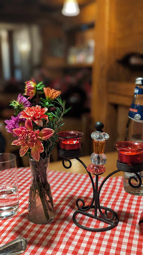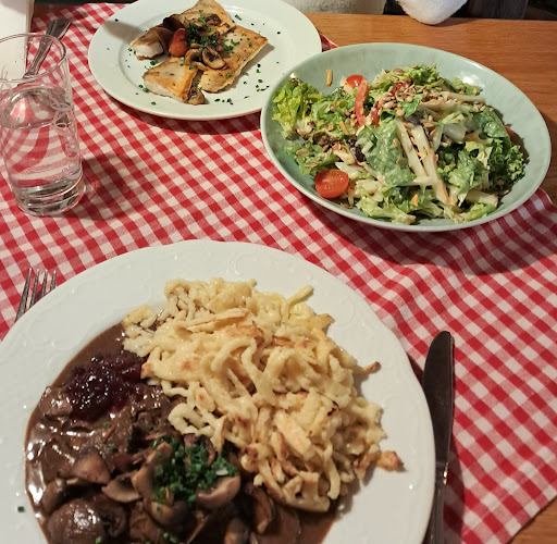 Read moreWir waren zum Abendessen dort. Die Atmosphäre war gemütlich, der Service freundlich, aber überfordert. Der elsässische Wurstsalat meines Freundes war gut gemacht, fein geschnitten und mit schmackhafter Vinaigrette angerichtet. Die bestellten Bratkartoffeln wurden leider vergessen, dann nachgereicht; entsprechend waren sie glasig und nicht richtig knusprig. Mein "Schlemmersalat" mit Ziegenkäse bestand aus einem Teller mit gemischtem Salat (grüner Blattsalat, Möhren- und Zucchinistreifen, roter Paprika und Vinaigrette) leider alles zusammen gemengt und dadurch unansehnlich zusammengefallen und zu einem großen Haufen angerichtet, daneben 4 Stücke Ziegenfrischkäse mit schwarzbraunen, undefinierbaren Krustenstückchen, daneben zwei lieblos hingeklatschten Klecksen Preiselbeermarmelade. Brot gab es dazu nicht, das wurde auf Anfrage erst später gereicht. Das Ganze zu 20 Euro. Leute, da stimmt doch was nicht! Trotz meiner Beschwerde wurde das Gericht in der Rechnung voll berechnet. Als Ausgleich wurde mir ein Espresso angeboten. Hier müsste sich die Küchenleistung deutlich steigern, über Preise nachgedacht werden und der Service geschult werden, um dem Gast ein Wohlgefühl...