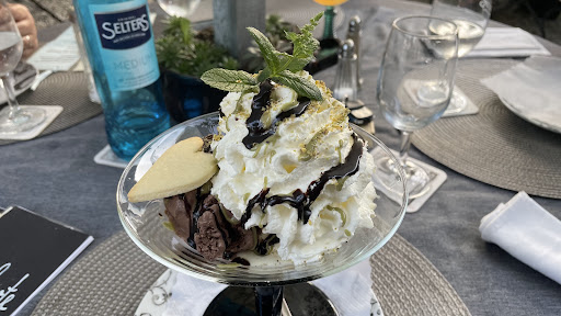 Wir hatten reserviert - das ist angemessen angesichts der geringen Anzahl an Tagen, an denen das Lokal geöffnet hat. Es gibt Plätze drinnen, in einem Wintergartenanbau und im Sommer herrlich unter großen Bäumen. Ein Koch ggf. mit Unterstützung & eine sehr freundliche Bedienung scheint es an unserem Abend gegeben zu haben - und mein Favorit war der Pitazieneisbecher und der Boskop-Obstler on top @ finish.