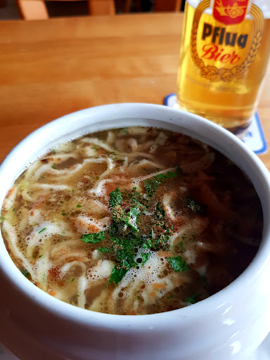The ground floor restaurant has a basic “no frills” atmosphere while the upstairs has its own 50s dance hall charm. I go for the deep-fried chicken, and it's the absolute best chicken I’ve ever had anywhere! The other menu items never disappoint, and the Pflug beer is fantastic. The place has many longer tables and when it gets busy, you can just squeeze in anywhere. What’s great about the place besides the food and beer, are the other customers. They are all into the same very casual and friendly vibe. It makes going there...