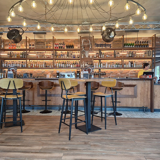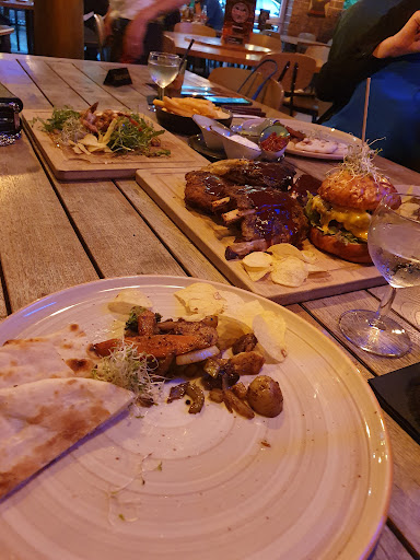 Die Fassade wirkt modern und das Eingangsschild ebenso. Auf der Terrasse rund ums Haus war bestuhlt. Leider war das Wetter zu schlecht für draußen. Durch die Eingangstüre, die mit einem verschlissenen Ledersack behangen war, ging es dann in den Vorraum. Dieser sah weniger ansprechend aus. Durch eine weitere Türe ging es dann ins Restaurant. Dieses sah sehr ansprechend aus. Schöne Möbel und eine Anrichte mit freiem Blick auf den Grill. Wir wurden herzlich empfangen und sofort zu unserem 2er Tisch im Barraum geführt. Dieser Raum ist gross und offen, eine riesige Bar war der Hingucker. Der Barkeeper war sehr freundlich und begrüßte uns. Der Raum selber dient offenbar nicht nur als Speiseraum, sondern auch für Veranstaltungen. An einem Deckengerüst hingen Lautsprecher und Lichtanlage. Unser Tisch stand am Fenster, die mit schweren Vorhängen zugezogen werden können. Unser Tisch klebte leider, was mir im T-Shirt sofort aufgefallen ist. Die Speisekarte lehnte an der Wand, ebenso das Besteck. Die Speisekarte ist aufgeräumt und nicht sehr Überladen. Sie ist ausführlich und es wird auf vegane und vegetarische Gerichte hingewiesen. Leider stimmen die Preise, wie sie online auf der Website angeboten werden, nicht mit den aktuellen Preisen überein. Hier sollte unbedingt mal ein Update erfolgen. Das Besteck war sauber und die Steakmesser sehr hochwertig. Die sehr freundliche Bedienung nahm sofort unsere Getränkebestellung auf. Ich hatte ein alkoholfreies Weizen und mein Mädel ein Lillet Wild Berry. Mein Weizen war ein Paulaner. Der Lillet schmeckte sehr wässrig. Die Bedienung nahm unseren Essenwunsch auf und sehr schnell kam der kleine Salat. Diesen konnte man mit diversen Dressings bestellen. Leider war mein Dressingwunsch (Lime) aus und ich musste den Salat mit Balsamico-Dressing nehmen. Der Salat war frisch, üppig und schmeckte hervorragend. Mein Dressing war sehr sauer. Nach etwa 20 min Wartezeit kam dann auch unser Hauptgang. Ich hatte Spareribs mit BBQ-Sauce und mein Mädel den Rindfleischspieß ohne Kartoffeln. Mein Essen war warm. Das meines Mädels war leider kalt. Der Barkeeper wollte das Essen nochmal aufwärmen. Das Rindfleisch war auf den Punkt gebraten und wäre nach dem Aufwärmen zur Schuhsohle geworden. Daher lehnten wir ab. Ihr Fleisch war geschmacklich sehr gut und das Gemüse noch knackig. Dieses war aber sehr Fenchel-lastig, was nicht Jedermanns Geschmack ist. Die Kräuterbutter war ebenfalls sehr gut und schmeckte hausgemacht. Meine Spare-Ribs waren leider sehr trocken, trotz BBQ-Sauce, geschmacklich aber gut. Die Pommes waren sehr gut. Das Essen wurde auf Holzbrettern serviert und schön angerichtet. Die Größe der Portionen war auch gut. Im Anschluss an das Essen bekamen wir 2 heisse kleine Handtücher, um unsere Hände zu reinigen. Dies habe ich bisher noch nicht erlebt, fand ich aber großartig. Als Dessert bestellte mein Mädel noch ein Schokosoufflet mit Waldbeeren. Diese wurde warm serviert und sah sehr ansprechend aus. Das Soufflet war sehr schokoladig und die Früchte schmeckten hervorragend.