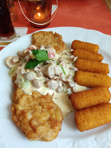 Mein schnitzel war sehr trocken und leider nur lau warm! Mein Mann hatte einen Schweine Braten, da fehlte leider auch einen Löffel mehr Soße. Gerade mal vorne an auf dem Fleisch war ein Klecks Soße, und die Pommes dazu waren leider auch nur lau warm.