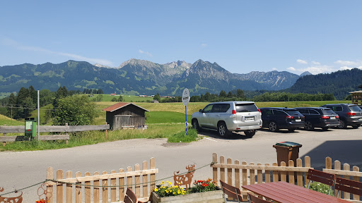 Read moreGriabiges, vielleicht teilweise etwas renovierungsbedürftiges, aber sehr nettes, kleines Hotel in wunderbarer, ruhiger und unverbauter Lage mit super Aussicht, sehr guter, deftiger Küche und großer Bierkarte aus aller Welt (der Wirt braut auch selber) - war sehr interessant was es da alles gibt, kannte mich vorher gar nicht damit aus. Frühstück und Abendessen waren wunderbar, wir haben uns jeden Tag aufs Essen gefreut. Man kann bei schönem Wetter auch immer gern bei wunderbarem Bergpanorama draußen sitzen. Wir hatten ein liebevoll eingerichtetes Familienzimmer mit wirklich großem Balkon und Extra-Zimmer fürs Kind, ein super-bequemes Bett auf einem Hornschlitten, und auch die Kinderbetten und -matratzen waren tiptop. Zum Bad (sehr schön renoviert) musste man allerdings durchs Kinderzimmer durch, die Tür dahin schliff laut und ziemlich schwergängig über den Fußboden, und das sehr helle Badlicht blitzte in ausgeschaltetem Zustand alle paar Sekunden hell auf – sprich man hat denjenigen, der in diesem Kinder-Durchgangszimmer geschlafen hat, leider bei jedem nächtlichen Gang zur Toilette gestört und teilweise auch aufgeweckt, das war etwas nervig. Hunde sind herzlich willkommen, wir hatten auch extra ein Zimmer in der Nähe des Hinterausgangs, so dass wir zum Gassigehen schnell draußen waren, das fanden wir sehr angenehm und gut mitgedacht. Wirt und Wirtin und alle Mitarbeiter waren sehr nett, freundlich und hilfsbereit. Es gibt viele tolle Ausflugsziele in der Nähe und eine Fahrt mit den Bergbahnen der „Hörnerdörfer“ ist pro Tag im Hotel-Preis mit drin, man kann wunderbare, nicht sehr schwere Wanderungen von der Bergstation aus machen, und unbedingt auch die Mountain-Carts ausprobieren :-). Die nahegelegene Breitachklamm ist unglaublich beeindruckend, aber nix für Menschen mit Höhenangst. Sehr zu empfehlen auch die Alpe Dornach beim Abstieg danach, aber besser rechtzeitig da sein, war am Sonntag proppenvoll.||Verbesserungsvorschläge: eine zweite, ständig eingeschaltete Lampe im vorderen Gangbereich vor unserem Zimmer wäre toll gewesen, da es dort immer wirklich sehr sehr duster war, die taghelle Neonbeleuchtung auf dem Balkon abends empfanden wir als störend, und ich hätte mich gefreut, wenn jemandem aufgefallen wäre, daß ich während meines Aufenthalts Geburtstag hatte (man muss die Geburtsdaten ja bei der Anmeldung angeben). Und wegen uns müsste beim Abendessen kein Romantik-Schlager laufen ;-), aber das ist Geschmackssache. Ansonsten ein rundrum gelungener Kurzurlaub, den wir in schöner Erinnerung...