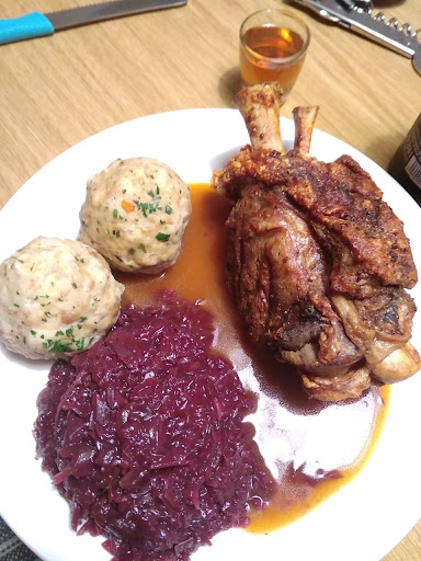 Wir hatten zwecks corona essen zum mitnehmen bestellt. ( Danke das es möglich ist,wird leider nicht überall angeboten.) Das Essen war pünktlich fertig und in einer Pappbox verpackt. ( geht also auch ohne Plastik). Das essen war noch gut warm. Portiongrösse ist völlig ausreichend. Mein Schweinshaxen war aussen schön knusprig und innen saftig. So wie es sich halt gehört!! Knödel und Rotkraut waren auch...