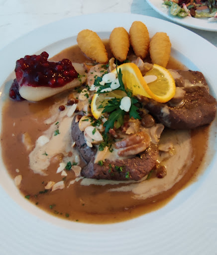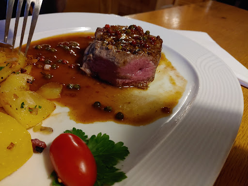 Unsere Entscheidung fiel auf Schupfnudeln mit Gemüse und Zwiebelrostbraten. Beide Gerichte haben uns in jeder Hinsicht begeistert: Schupfnudeln und Gemüse waren perfekt "al dente" und die dazu gereichte Sauce sehr geschmackvoll zubereitet. Das Roastbeef des Zwiebelrostbratens war punktgenau medium gebraten und die reichlich darauf angerichteten Röstzwiebeln sowie die Brakkartoffeln schmeckten mega-lecker.