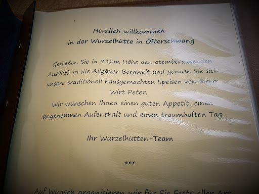 Read moreDie Wurzelhütte in Ofterschwang besticht vor allem durch ihre traumhafte Lage – das Panorama ist wirklich atemberaubend! Von der Terrasse aus hat man einen beeindruckenden Blick auf die Gipfel der Allgäuer Alpen. Allein dafür lohnt sich schon ein Besuch.