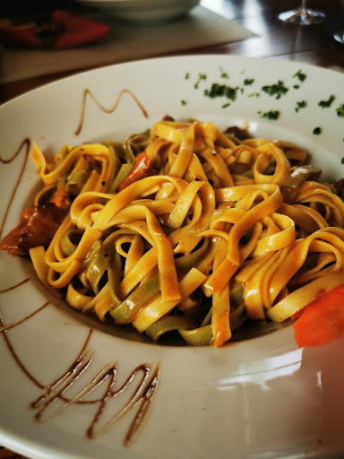 Kurz um wir waren begeistert. Der Service glänzte mit Nettigkeit und nicht aufdringlicher Freundlichkeit. Und was soll man zu dem Essen schon sagen? Wir hatten Die selbstgemachte Pasta mit Pfifferlinge Die selbstgemachte Pasta mit Champignons Das Rumpsteak in Scheiben Und die selbstgemachten Kartoffelnudeln. Man möchte meinen, dass gerade zwischen den beiden Pilzgerichten der einzige Unterschied die Pilze sind. Aber nein. Die Pfifferlinge mit Pasta bzw die Soße dazu hatte ihren eigenen hervorragenden Geschmack zum Champion mit Pasta und deren Soße. Und das OHNE das die Champions faad im Vergleich zu den Pfifferlingen erschienen Rundum sehr lecker und genügend Soße dazu (wir lieben das :) !! ) Das Rumpsteak in Scheiben war Scheibe für Scheibe Medium wie gewünscht. Nicht trocken Nicht zäh Einfach perfekt Auch die Kartoffelnudeln mit selbstgemachter fleischlosen (wie gewünscht) Bolognese waren vortrefflich. Ich gebe meinen Vorredner Recht Das einzige wäre der große Raum und die Akustik, die man bemängeln könnte. Das wäre aber meckern auf hohem Niveau und würde dem Essen unrespektierlich erscheinen. Vom Preis will ich gar nicht reden Wir sind von wesentlich mehr ausgegangen für diese Qualität, wohlgemerkt zum Satt werden . Es gab noch als Vorspeise Bruschetta dazu in 4versch. Varianten Jede davon ein Genuss Wir kommen auf jeden Fall wieder. Liebe Grüße an die Küche und den Service Vielen Dank für diesen gelungenen...